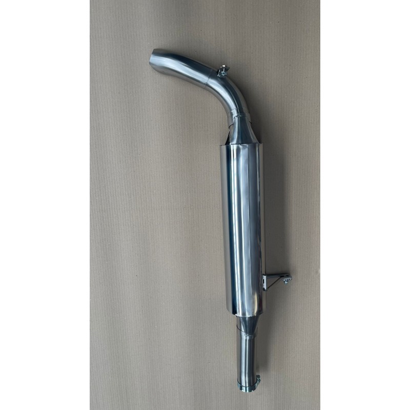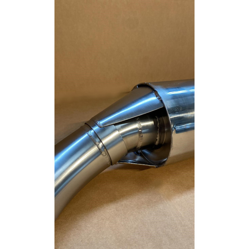 Intermédiaire avant silencieux, 100% inox, kit de montage fourni. Meilleure garde au sol. Compatible avec l'échappement d'origine.