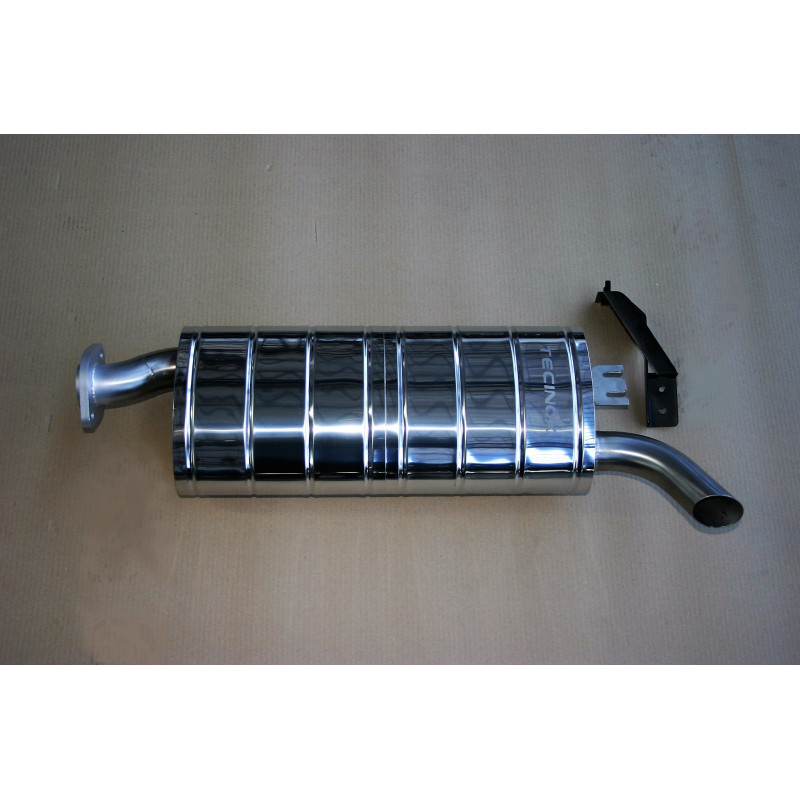 Le silencieux qui la compose est du type à chicanes afin de maintenir la sonorité à un niveau raisonnable. Sa forme ovale permet de limiter l’encombrement au maximum, il ne dépasse pas du châssis pour une protection optimale. Fabriqué entièrement en INOX, il tiendra sans soucis la durée de vie du véhicule. Sa double enveloppe poli-brossée a pour rôle d' éliminer les vibrations dans les chambres à certains régimes et de contenir la chaleur qui s’en dégage.