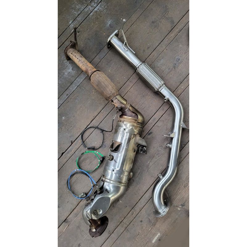 Amélioration notable des performances, baisse de la consommation. Ce défap est équipé des porte-sondes d'origine évitant ainsi de démonter toute l'installation d'origine. Non homologué pour un usage sur route ouverte. Compatible et interchangeable avec les autres éléments constitutifs de l'échappement d'origine. Fabrication 100% en inox.Livré avec joint et visserie. Reprogrammation du calculateur (boitier électronique) indispensable.