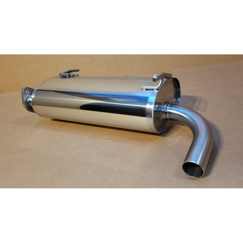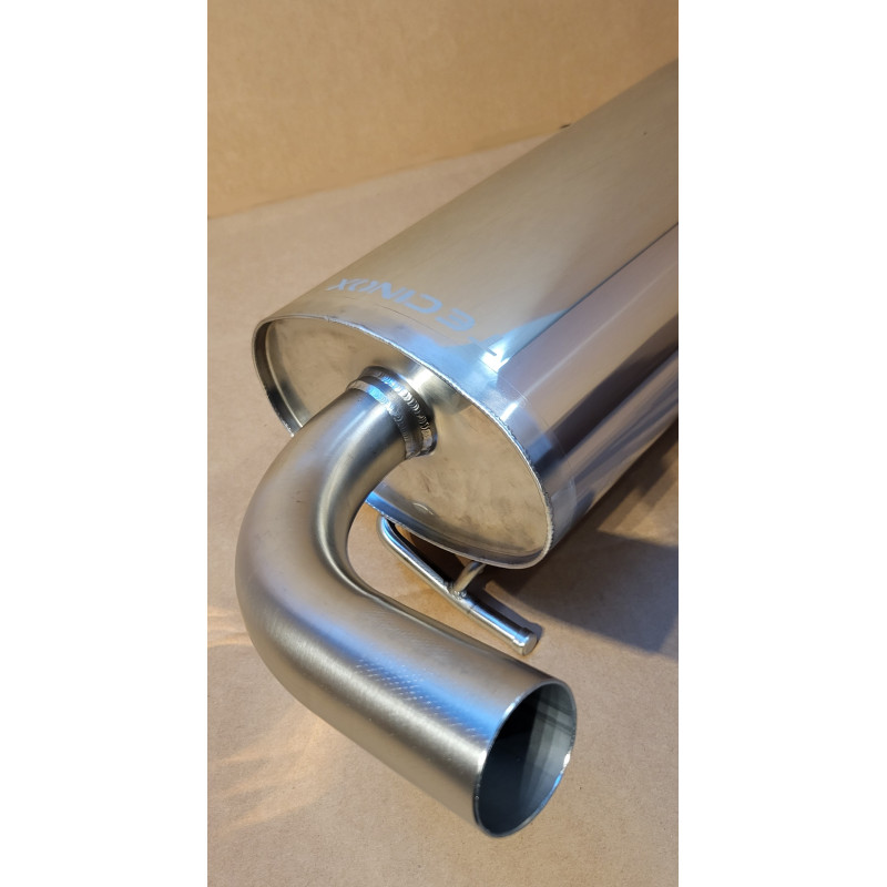 Ce silencieux de type absorption (flux rectiligne des gaz sans contraintes) remplace avantageusement celui d'origine de type à chicanes (labyrinthe interne qui bride énormément la circulation des gaz), offrant un sensible gain de performances et une sonorité plus mélodieuse. Compatible avec les autres parties de l'échappement d'origine. Construction 100% inox. Livré avec joint et visserie.