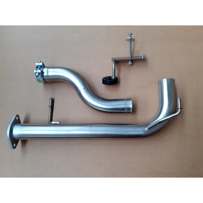 Intermédiaire avant silencieux, 100% inox, kit de montage fourni. Meilleure garde au sol. Compatible avec l'échappement d'origine.