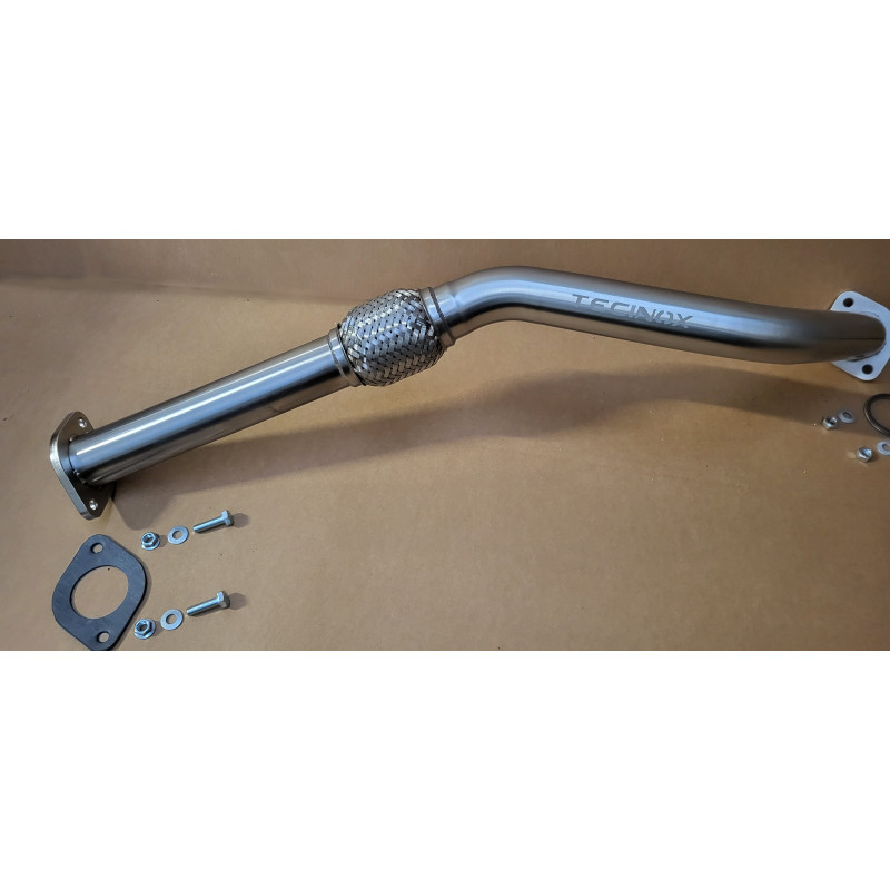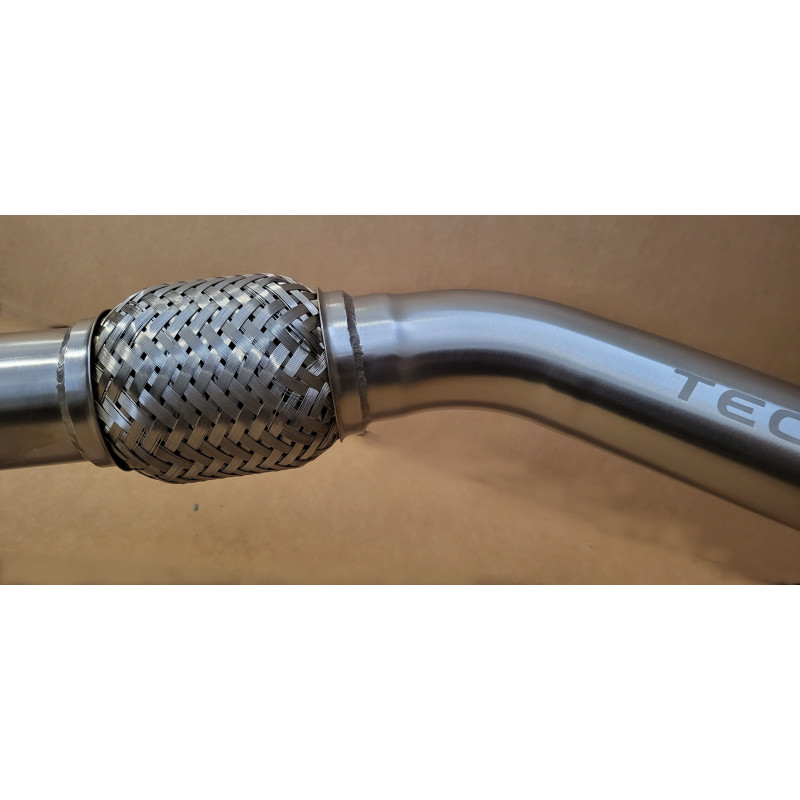Ce deuxième décatalyseur a été réalisé sur des gabarits TECINOX, à partir d'inox 304L recuit pour une qualité et résistance optimales (absence garantie de microfissures au cintrage). Il convient à tous les ISUZU D-MAX sortis d'usine avant 2007, ce décatalyseur a été conçu pour augmenter la puissance (non homologué route). Les ingénieurs de Tecinox ont mis au point cette pièce en 2006, elle est exclusivement destinée à la compétition. Le flexible est tout inox pour une souplesse entre le moteur et la ligne d'échappement.