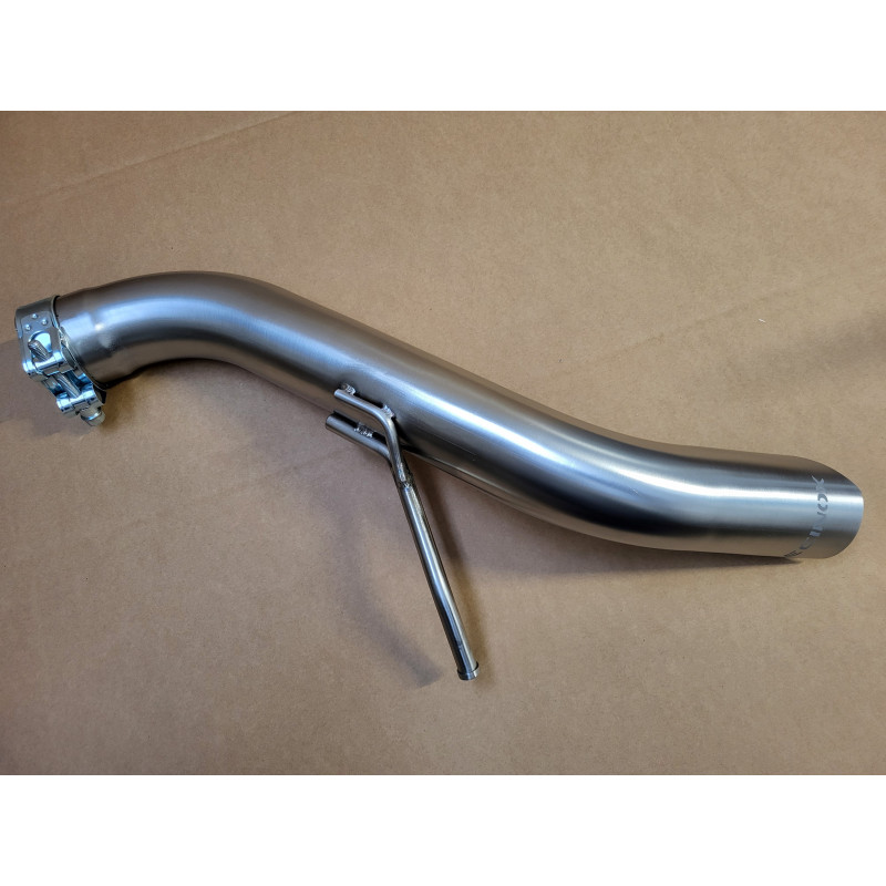 Intermédiaire avant silencieux, 100% inox, kit de montage fourni. Meilleure garde au sol. Compatible avec l'échappement d'origine.