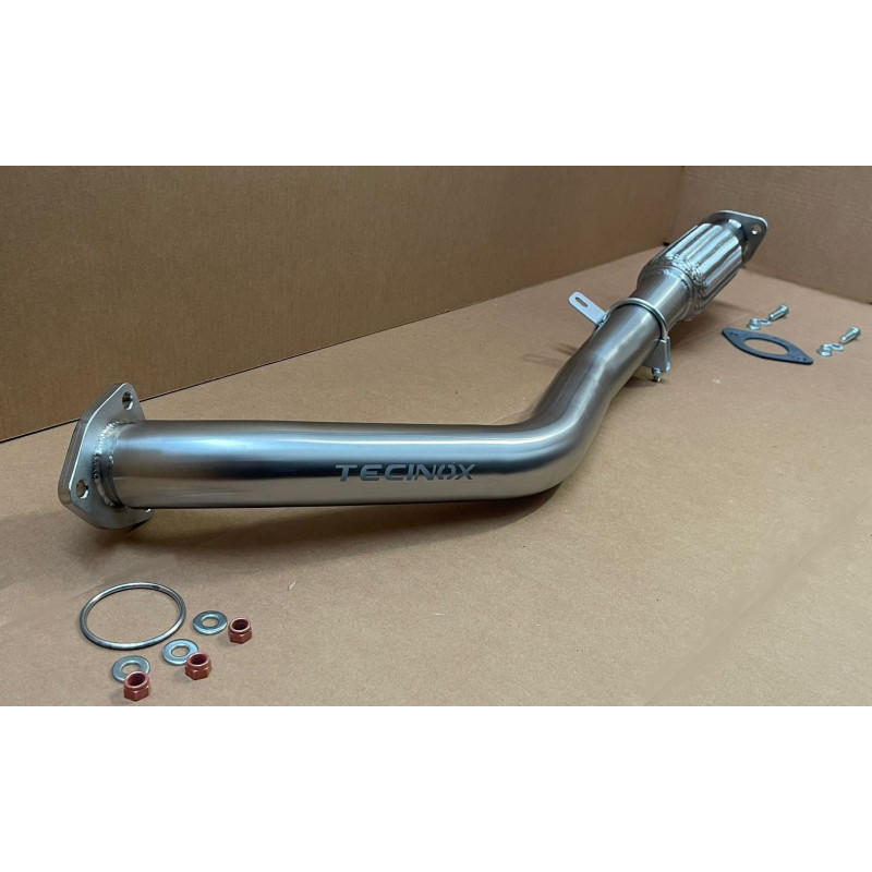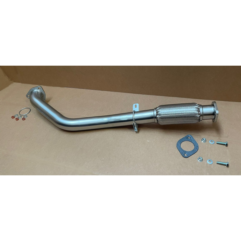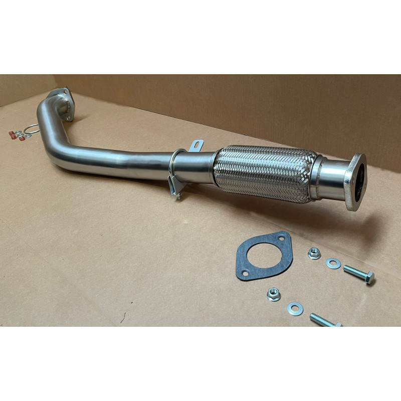 Ce tube entre le turbo et intermédiaire est équipé d'un flexible tout inox, cela permet de maintenir une certaine souplesse entre le mouvement moteur et la dilatation/rétraction chaud/froid de la ligne. Le passage effectif du flexible est amélioré par rapport l'origine en supprimant la bague de restriction. Nouveau: les brides sont dorénavant 100% inox (acier auparavant), pour une parfaite finition et une durabilité à toutes épreuves. Livré avec le kit de montage (patte de fixation, visserie, joints).
