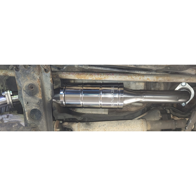 Intermédiaire avant silencieux, 100% inox, kit de montage fourni. Meilleure garde au sol. Compatible avec l'échappement d'origine.