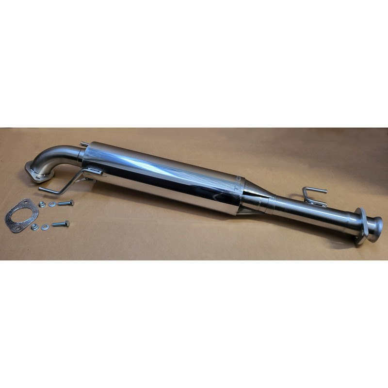 Silencieux arrière à absorption avec tube de sortie. 100% inox, sonorité, performances. Kit de montage fourni.