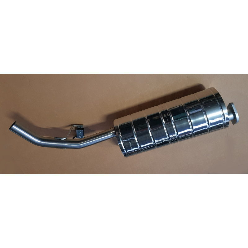 Silencieux arrière à absorption avec tube de sortie. 100% inox, sonorité, performances. Kit de montage fourni.